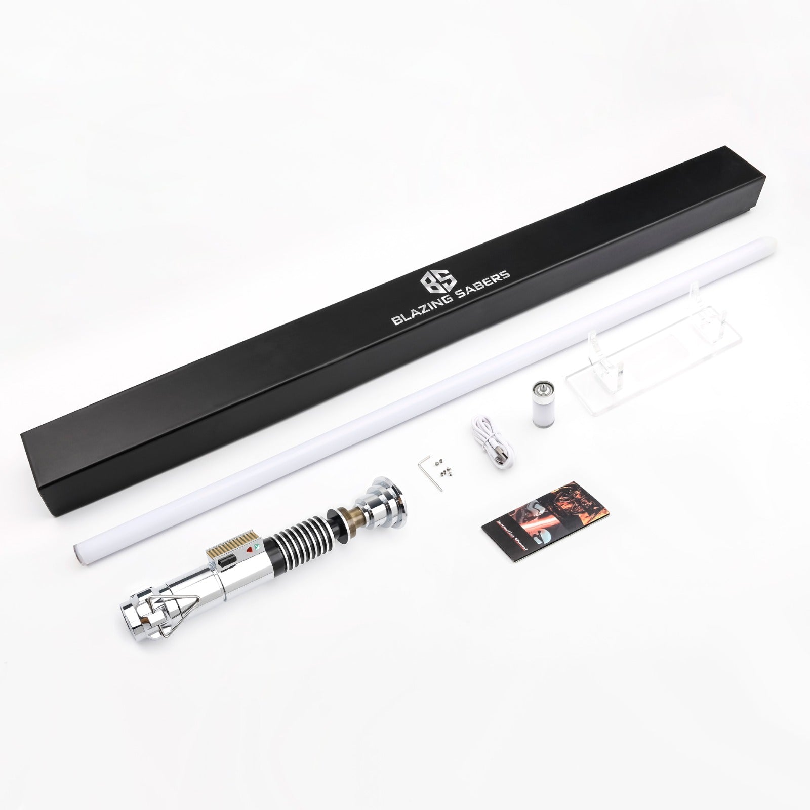 Incredible detail, perfectly weighted, and I can not express my level of amazement at the sounds! Everything from the smallest details of the slightest movements all the way up to crash effects and lock ups and tops it off with programmed matched sound/effects from each different unique saber seen on the big screen. They assisted me with saber support lighting fast, and when there was unexpected manufacturing delays, they stepped up and moved mountains to make a time sensitive deadline. Thank you for everything Blazing Sabers!